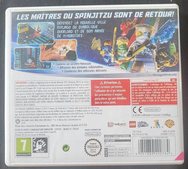 Jeu d'action et d'aventure pour 3DS, LEGO Ninjago : Nindroïds utilise l'univers des LEGO. Le joueur doit y voyager dans un certain nombre de niveaux en battant des ennemis et résolvant des énigmes à base de briques.