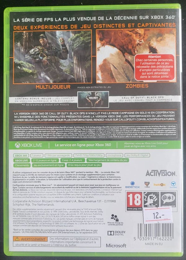 Call of Duty: Black Ops III est un jeu vidéo de tir à la première personne développé par le studio Treyarch édité par Activision, sorti le 6 novembre 2015 sur Microsoft Windows, Xbox One et PlayStation 4, PlayStation 3 et Xbox 360.