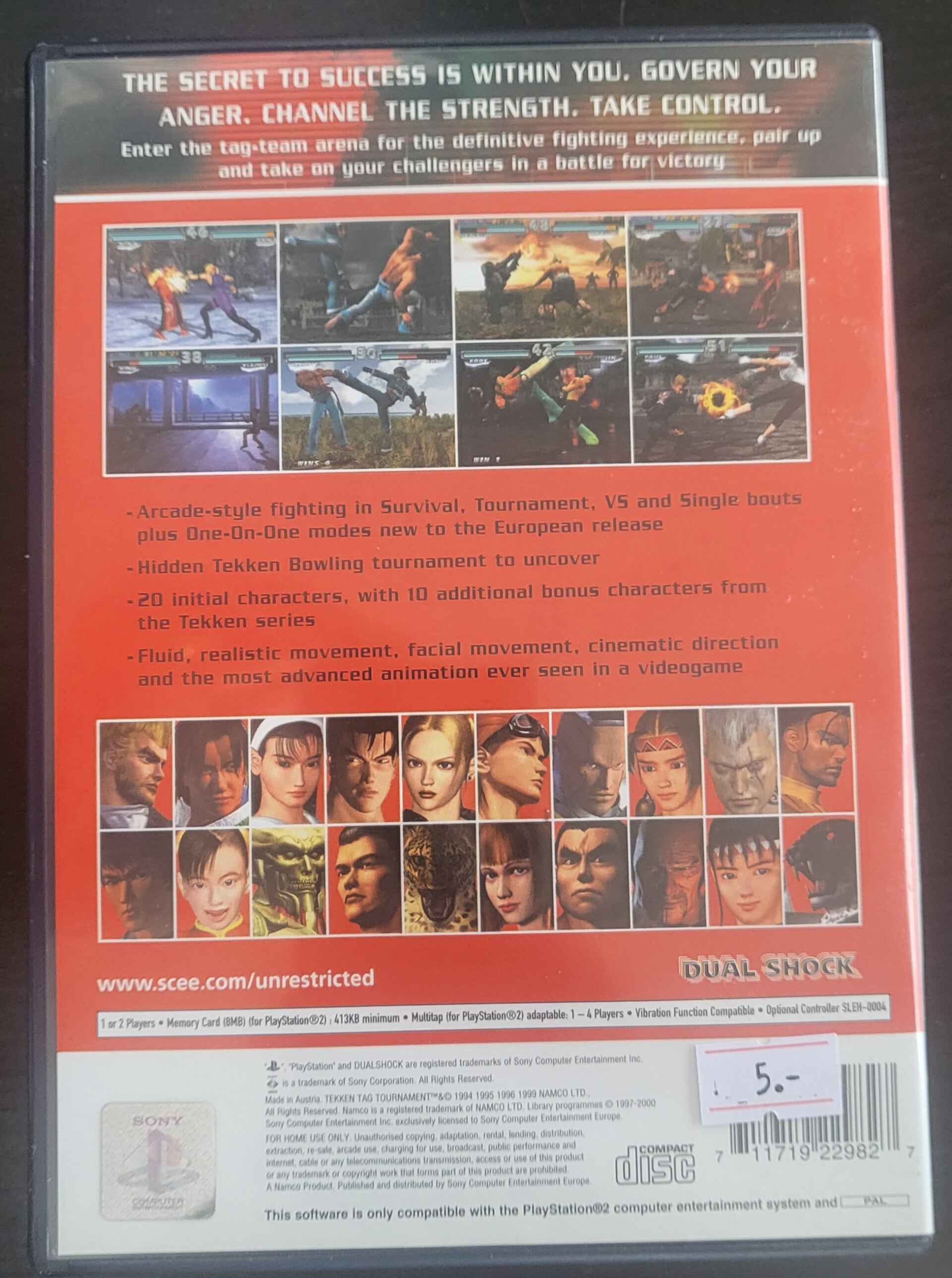 Tekken Tag Tournament est un jeu de baston sur Playstation 2. Pénétrez dans l'arène des matchs par équipes pour une expérience de combat optimal, formez des équipes et affrontez vos adversaires dans des combats au rythme effréné. Le soft propose une trentaine de personnages que vous pouvez associer comme bon vous semble pour effectuer des combos dévastateurs. Tekken Tag Tournament est jouable à 4 via le multitap.
